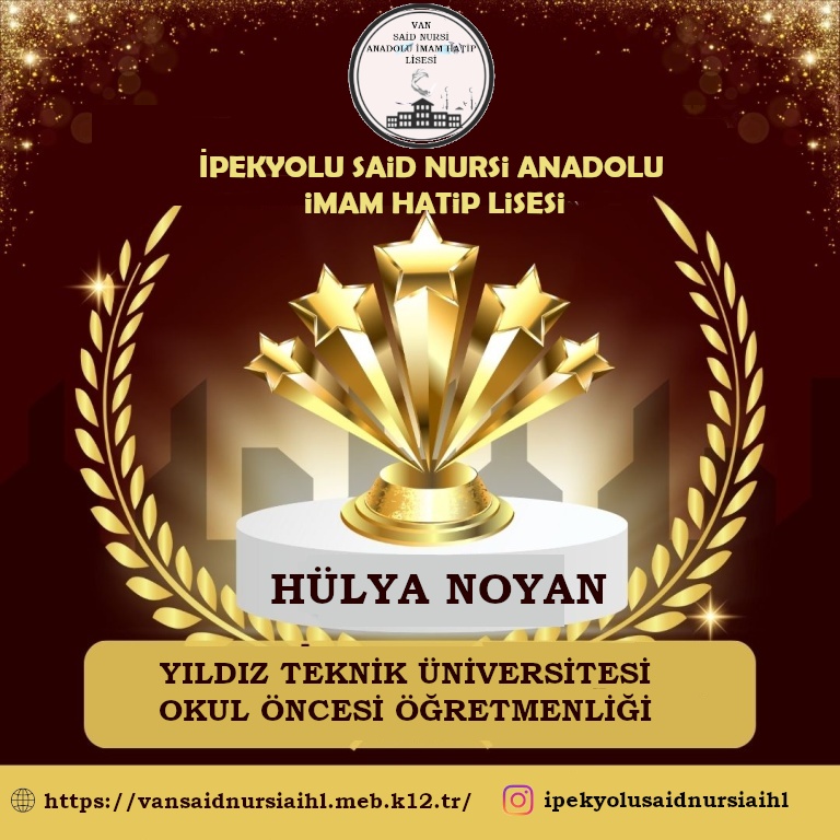 12.sınıf öğrencimiz Hülya NOYAN Yıldız Teknik Üniversitesi Okul Öncesi öğretmenliğini kazandı.